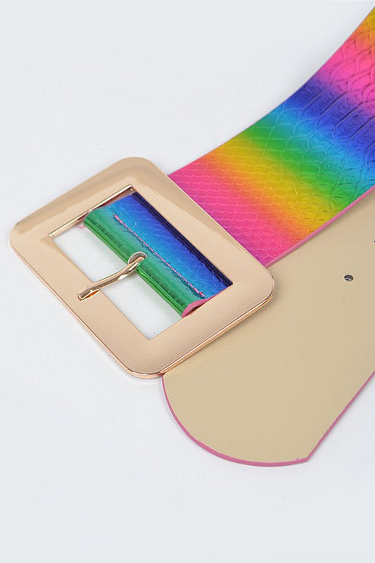 This bold faux snake belt features a striking gold buckle that commands attention. APPROX. WIDTH:2.5".LENGTH:39.5